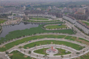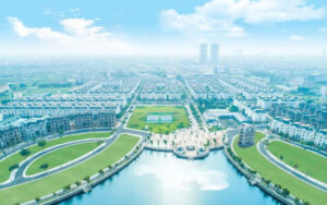 Tổng thể không gian khu đô thị được bố cục thành hai khu vực nằm về hai phía của trục đường chính. Khu vực phía Đông của dự án chủ yếu bố trí các nhà biệt thự song lập, nhà liền kề và nhà liền kề có vườn, nhà lô phố. Khu vực phía Tây của dự án với hồ nước lớn đặt ở trung tâm. Liền kề hồ nước là khu clubhouse, nhà hàng, trung tâm thương mại,…