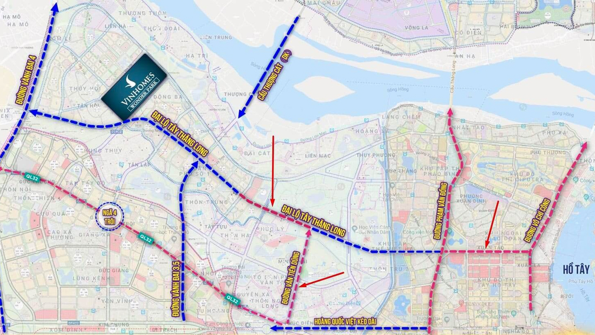 Theo quy hoạch, trong tương lai Vinhomes Wonder City nằm cạnh các trục đường huyết mạch của thủ đô như Đại lộ Tây Thăng Long, Vành đai 3,5, cách Tây Hồ chỉ 10 km, dễ dàng di chuyển vào nội đô.